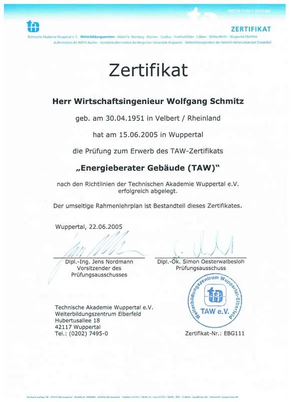 - Energieberater Gebäude (TAW) RWTH Aachen Energieausweis-Aussteller der DENA -421193- BAFA anerkannter Berater -101298-
